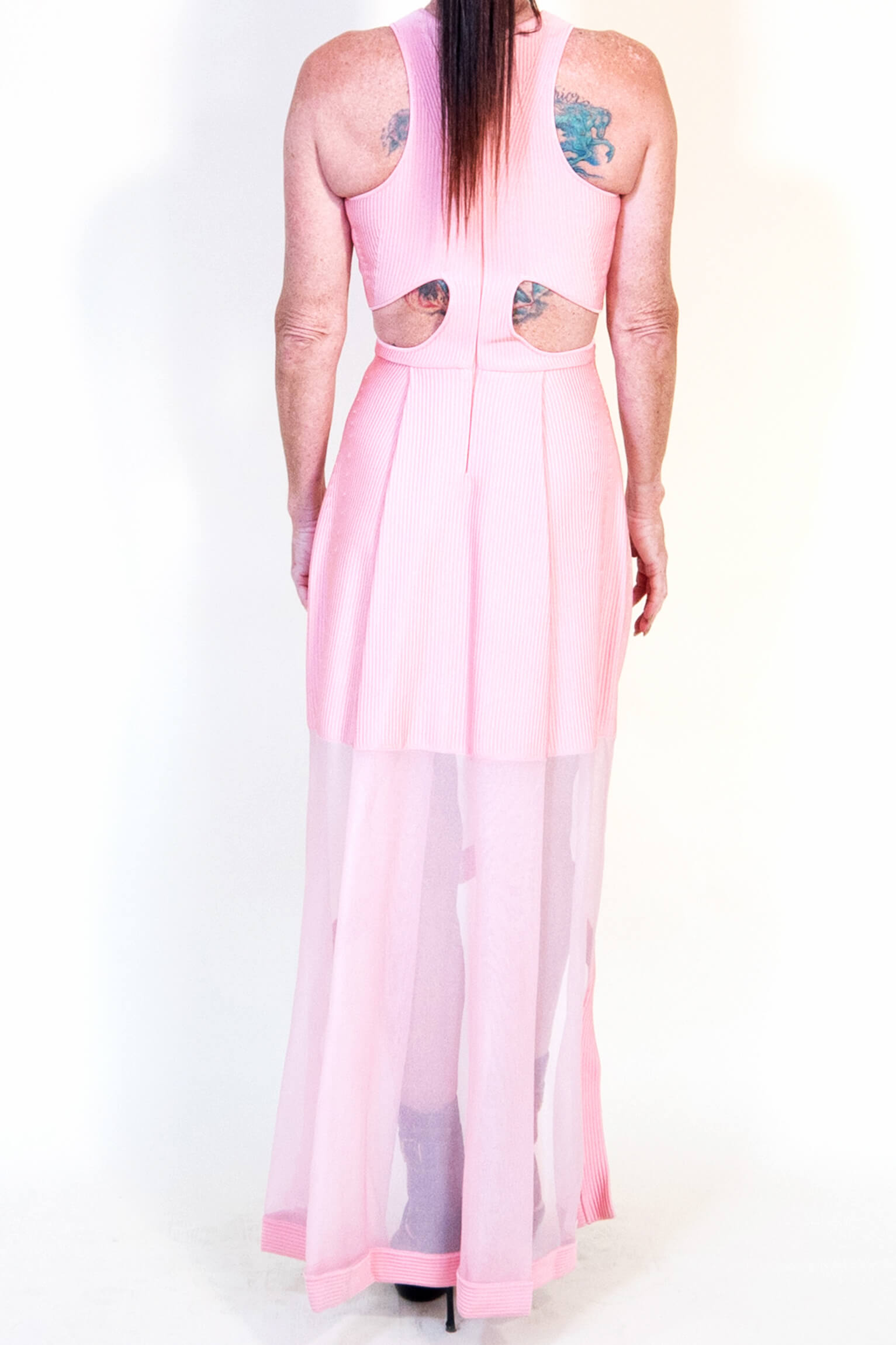 Alexander McQueen Pink Side Slashed Dress with Sheer Long Drape
