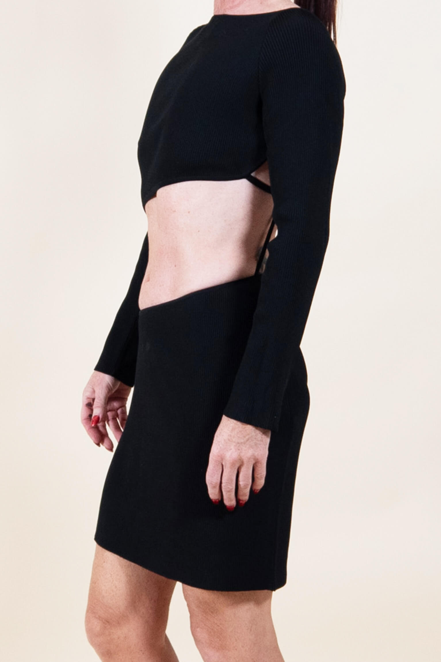 A very sexy and daring cut out dress. There is a nice silver embellishment saying GCDS on a little side back strap to the side of belly button, nice touch.
