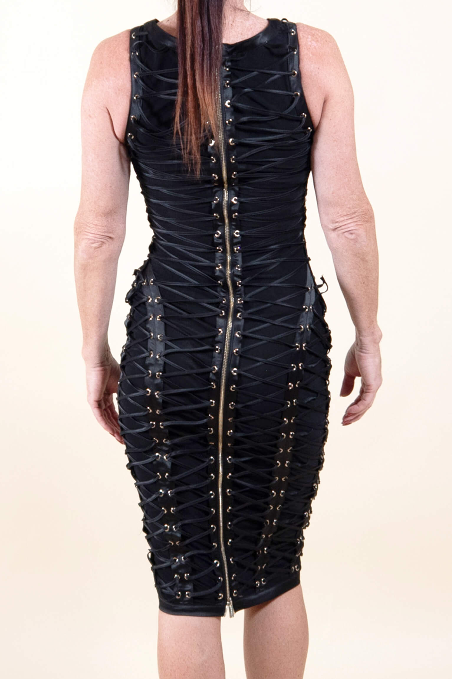 House of CB Black Corset Style Dress with Latticed Detail Throughout