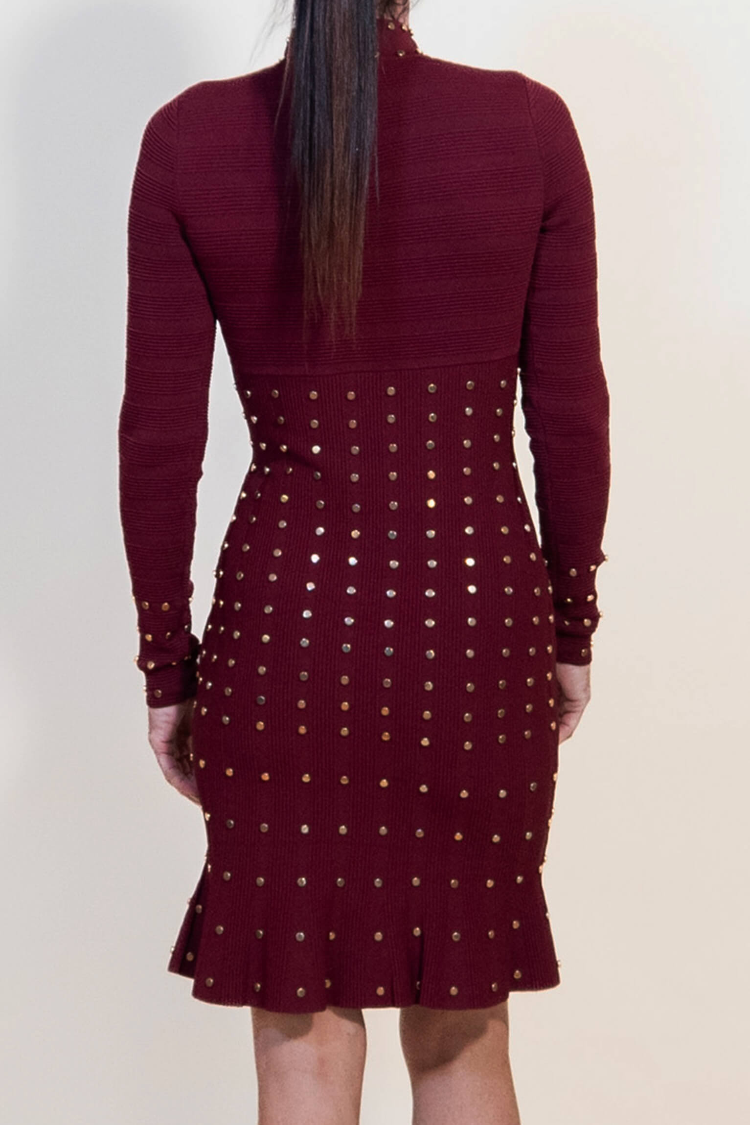 Karen Millen Brown/ Maroon Midi Length Knit Dress with Embellishments