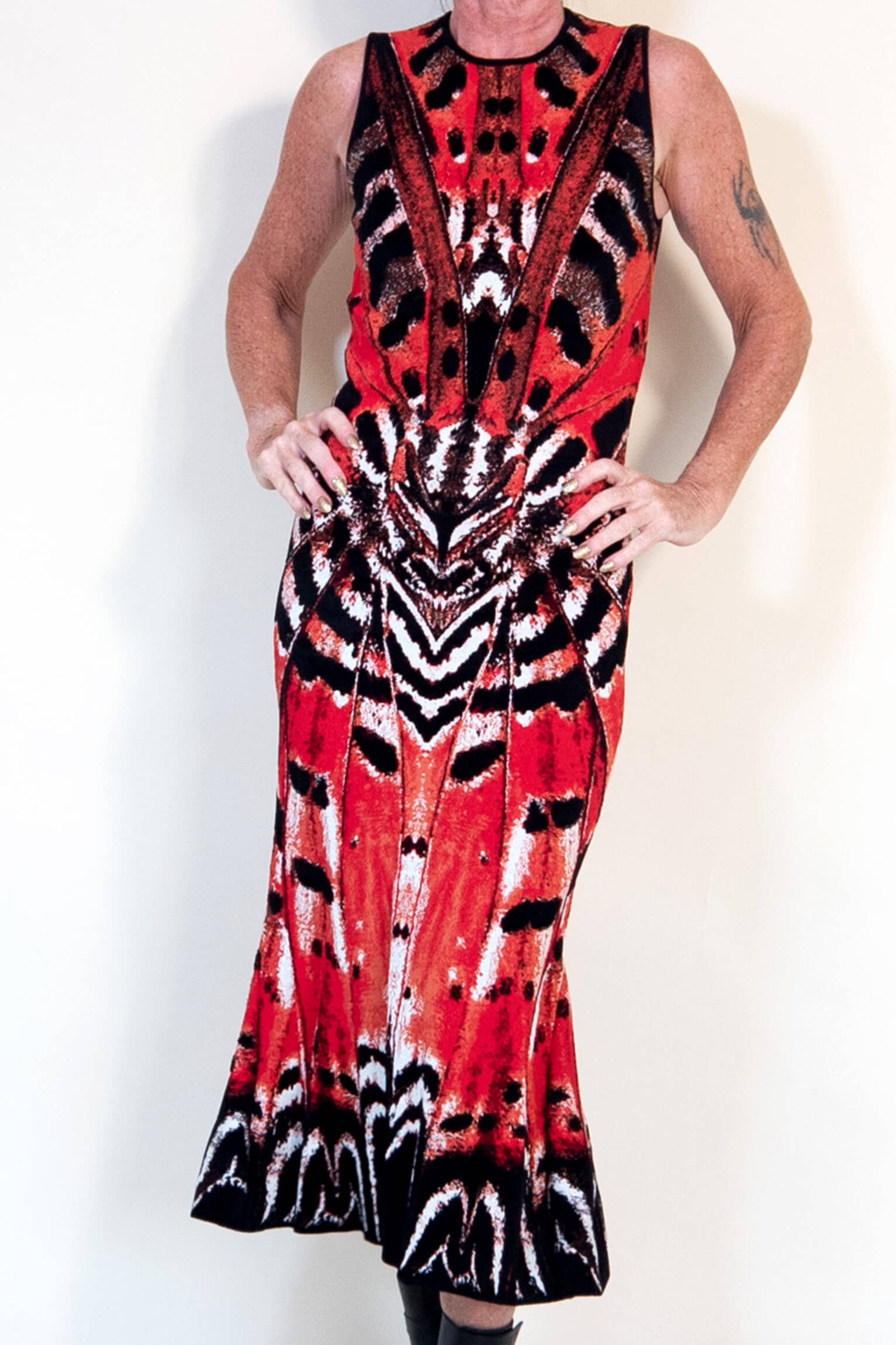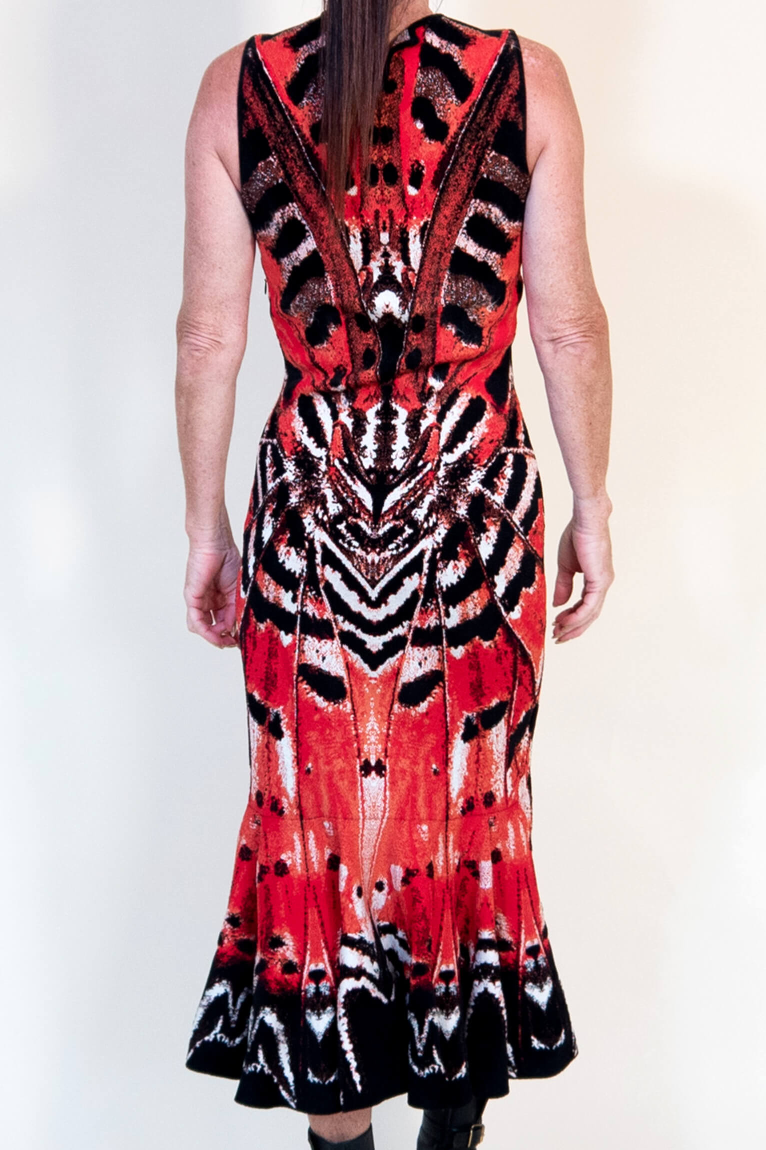 Long Red McQueen Tortoiseshell Butterfly Print Dress